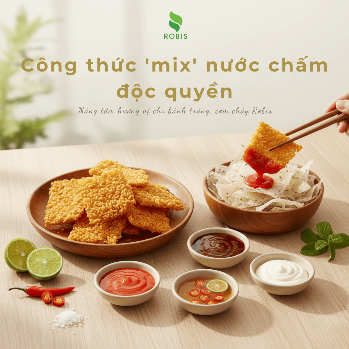 Công thức 'mix' nước chấm độc quyền: Nâng tầm hương vị cho bánh tráng, cơm cháy Robis.