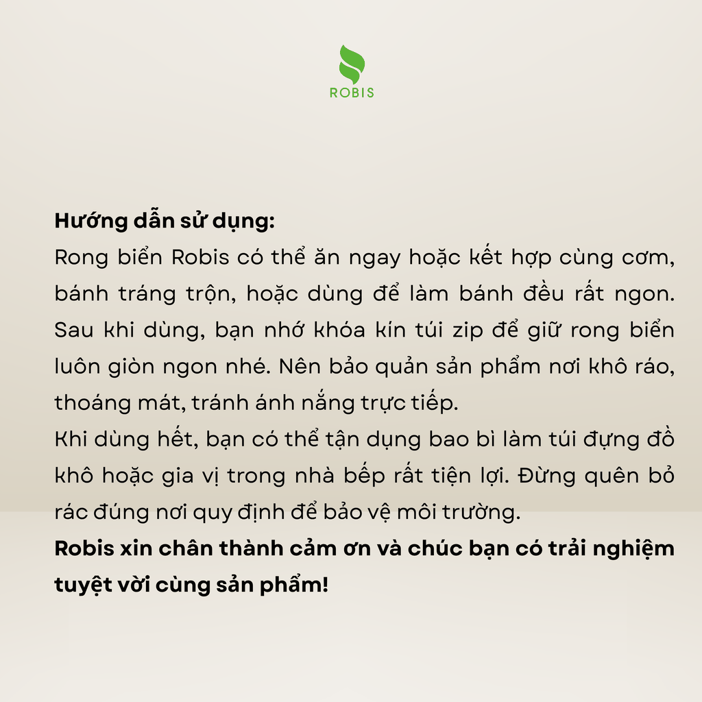 Rong biển tự nhiên sấy khô, gia vị đặc trưng công thức riêng của ROBIS.